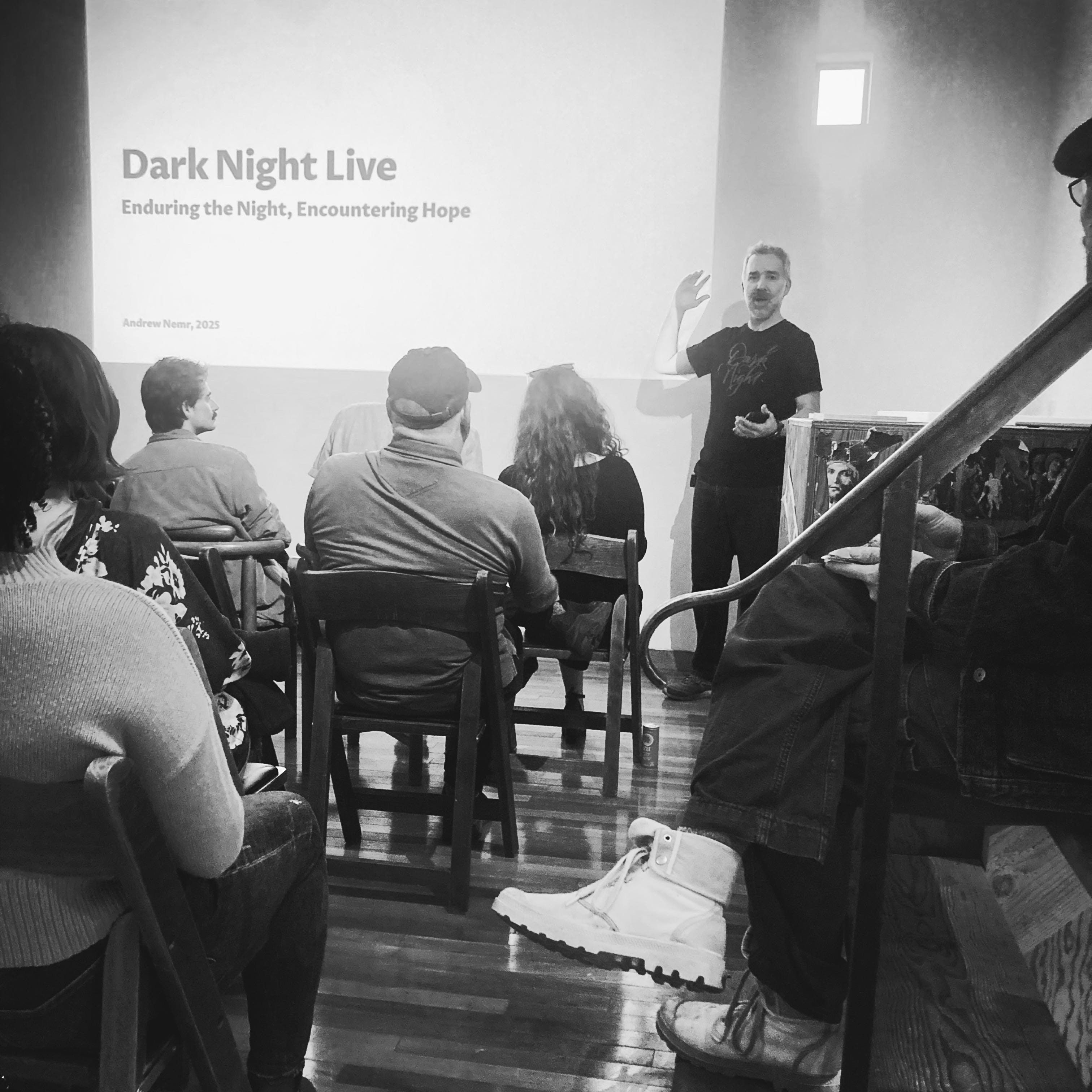Studio NotesDark Night Talk DebutTalking about an experience that had no words.Andrew NemrOct 11, 2025∙ PaidShareI thought I’d be talking for 20min. A TED Talk length would be nice. We’d have plenty of time for questions, conversation, and hang. After all, there were plenty of snacks to dig into.What actually happened was more like time traveling.This post is for paid subscribersSubscribeAlready a paid subscriber? Sign inPrevious